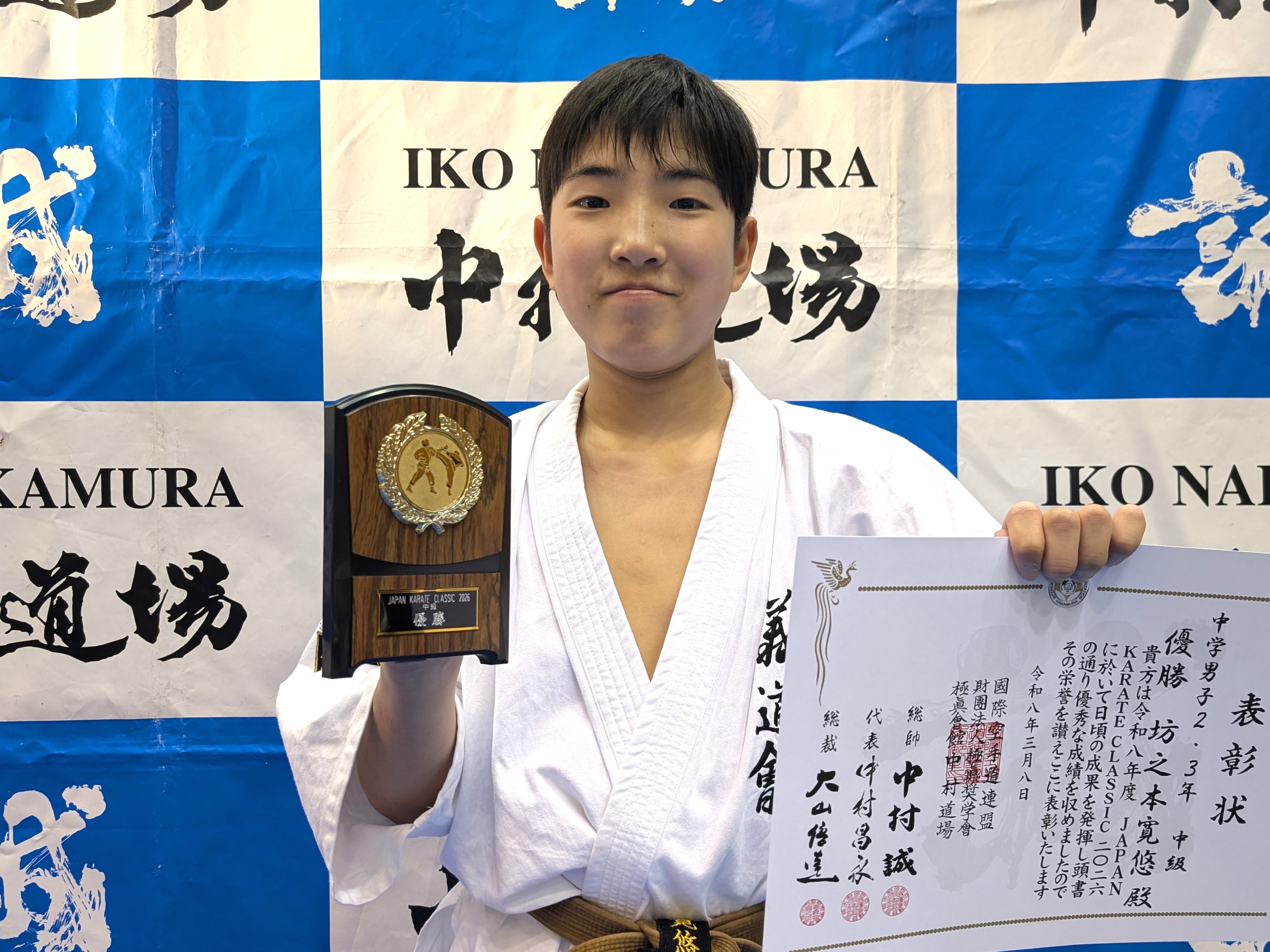 JAPAN KARATE CLASSIC 2026 優勝者 組手 中学生 男子