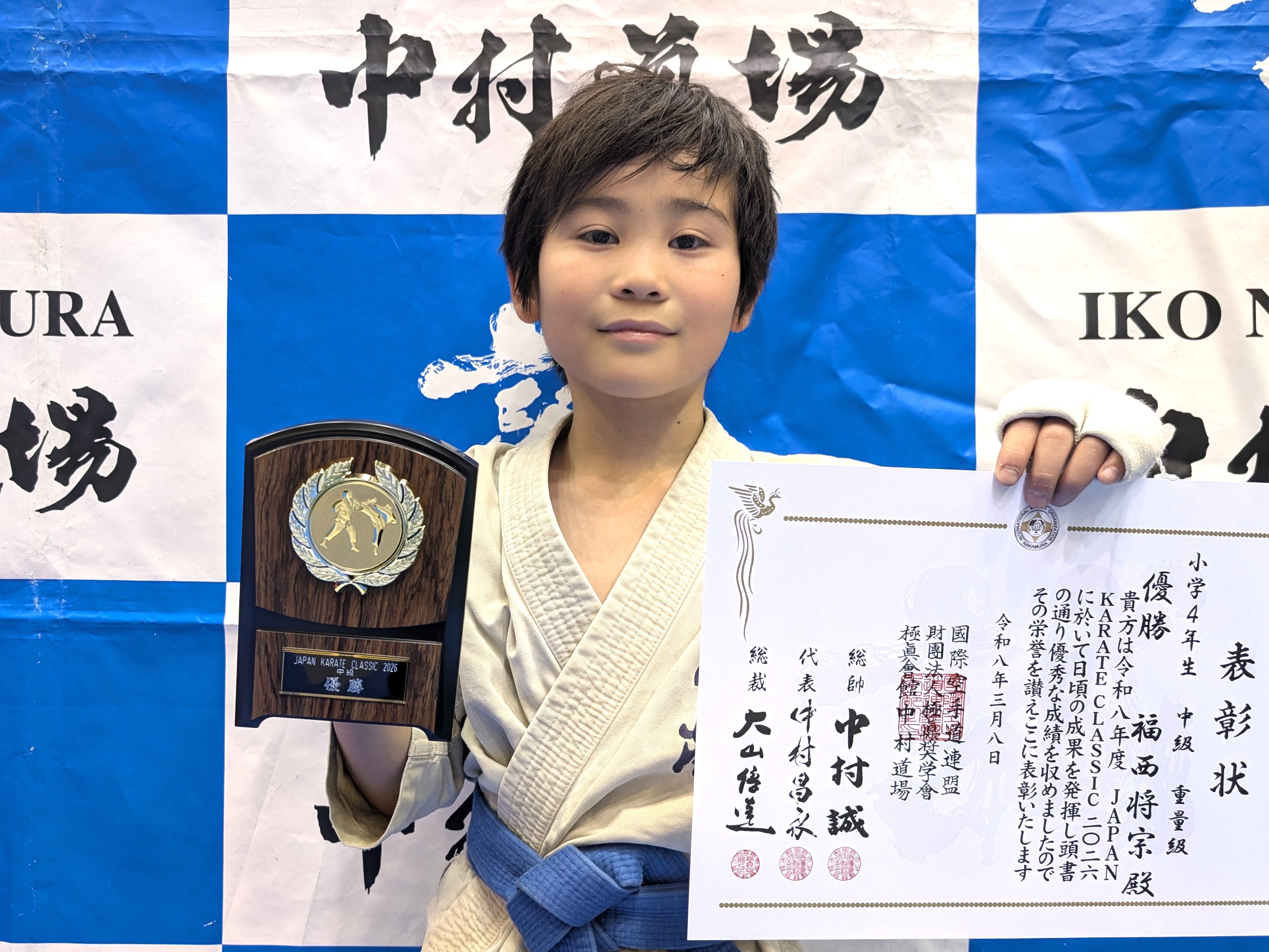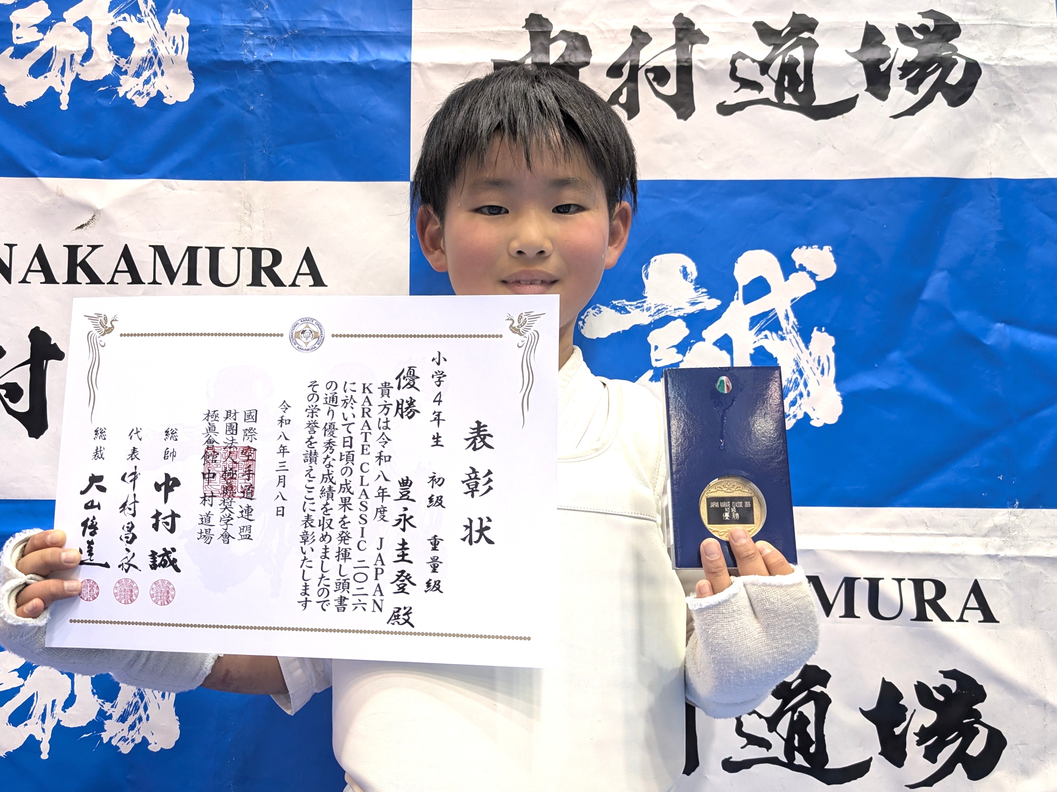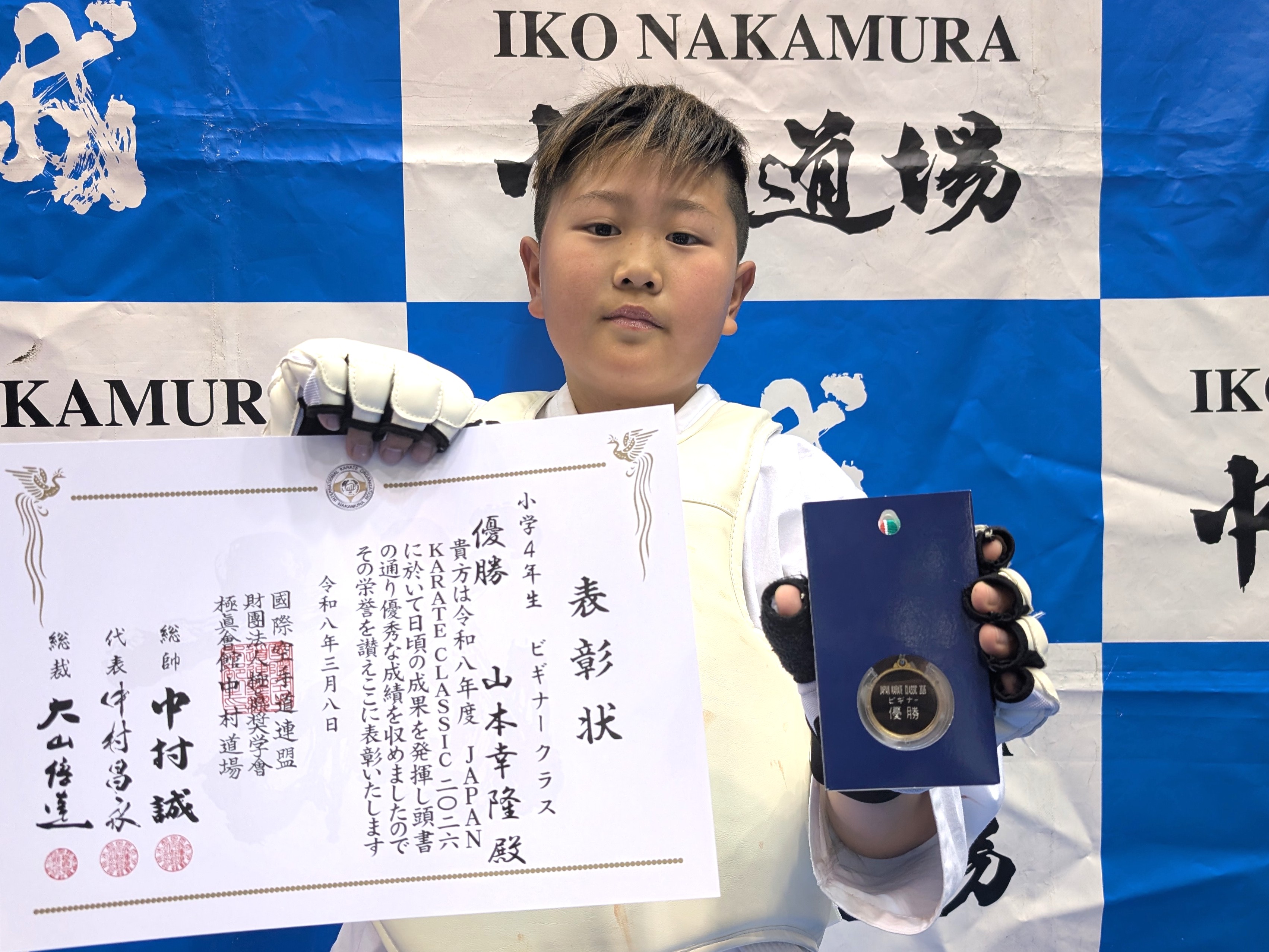 小学4年生(ビギナークラス) 優勝 山本幸隆(兵庫西支部) 小学4年生(初級)軽量級 優勝 阿部心遥(神姫支部) 小学4年生(初級)重量級 優勝 豊永圭登(尼崎支部) 小学4年生(中級)軽量級 優勝 新幸類翔(小野道場) 小学4年生(中級)中量級 優勝 久保井暁士(西宮支部) 小学4年生(中級)重量級 優勝 福西将宗(総本部道場) 小学4年生男子(上級)軽量級 優勝 丸山諒真(IBKA大谷道場) 小学4年生男子(上級)重量級 優勝 柴田鵬生(兵庫西支部)