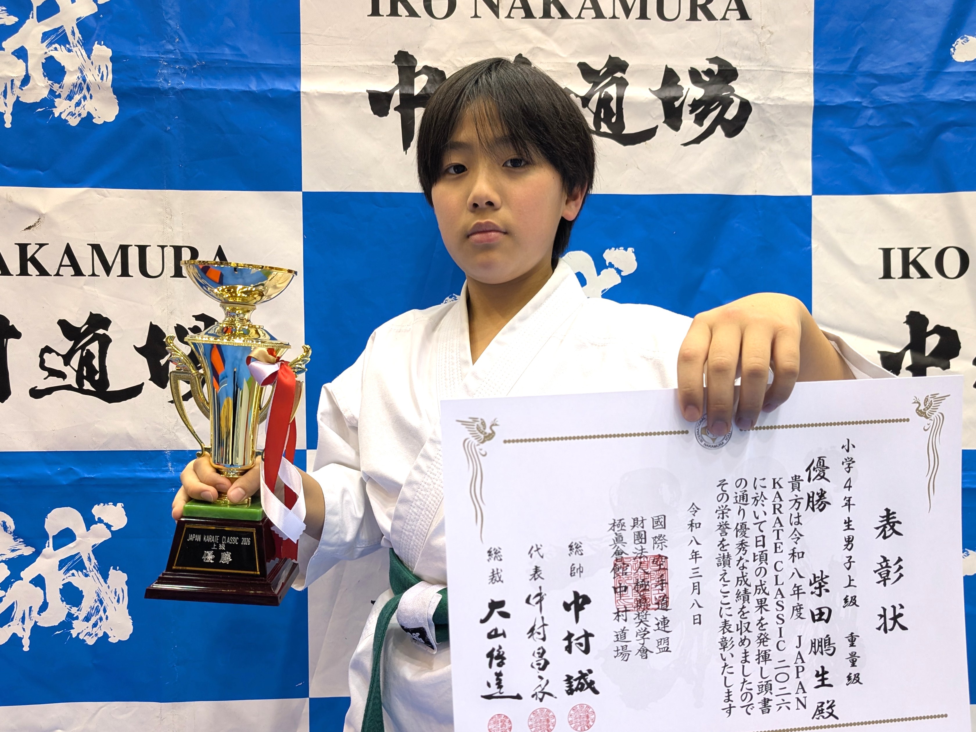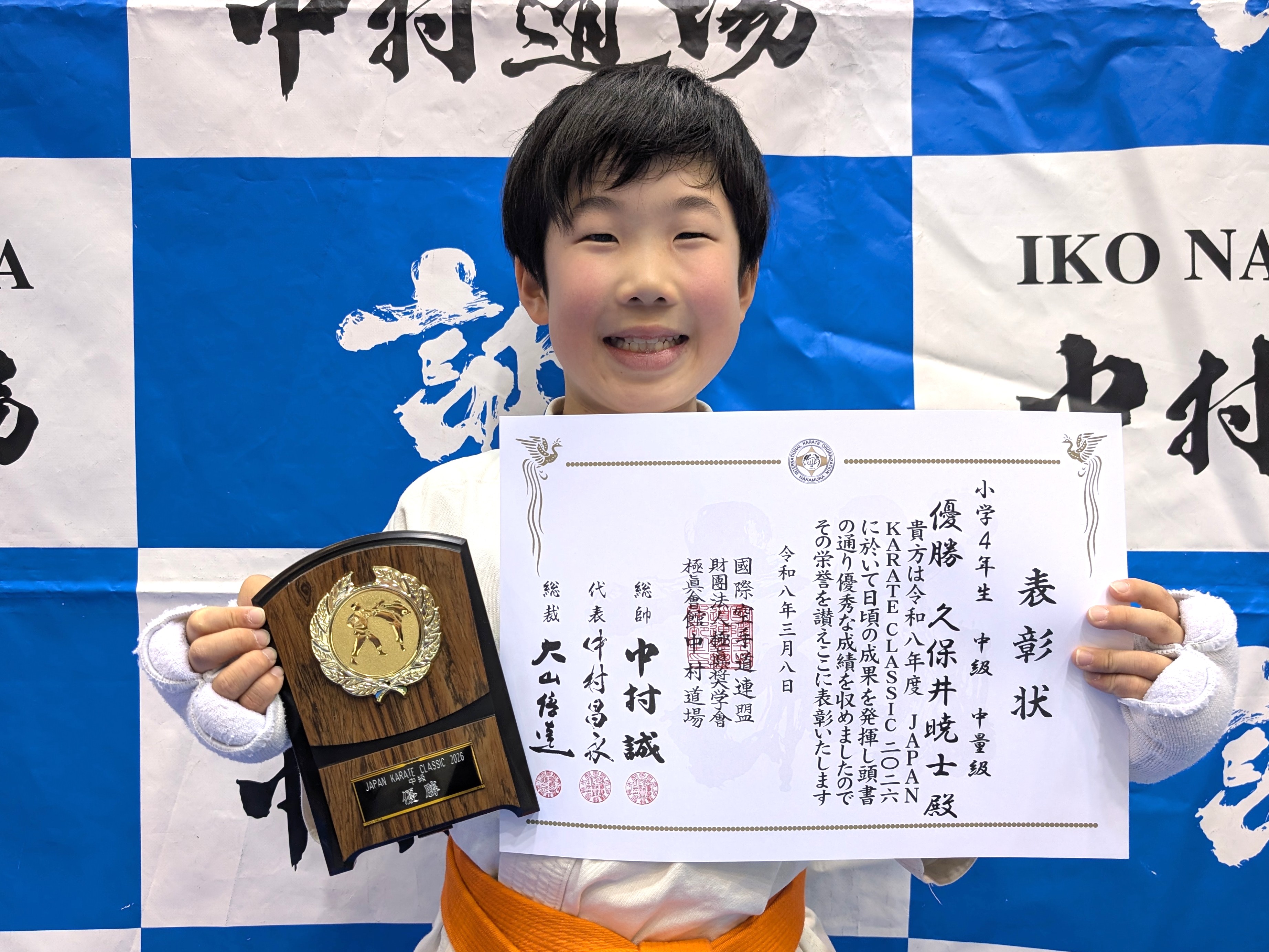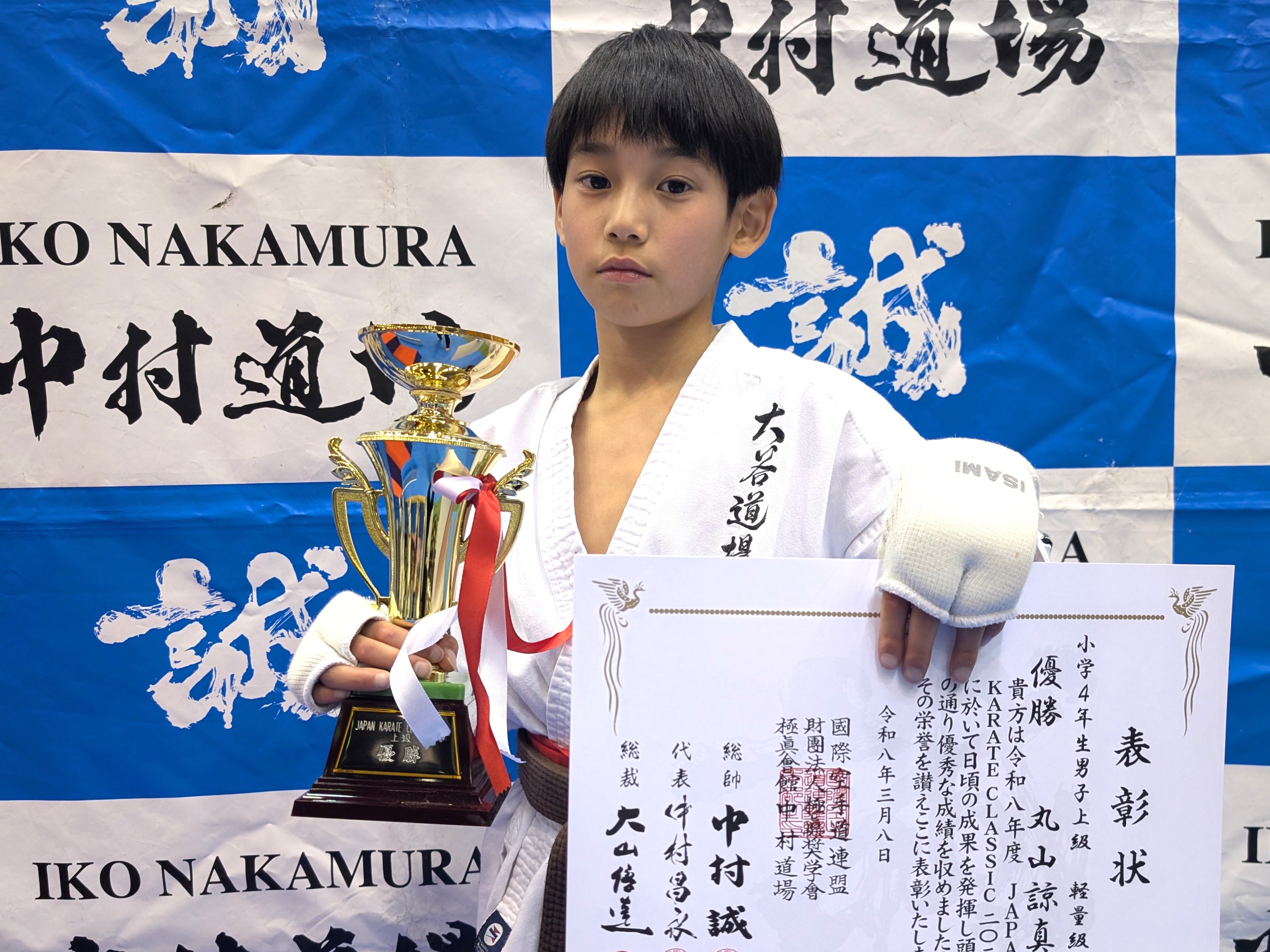 小学4年生(ビギナークラス) 優勝 山本幸隆(兵庫西支部) 小学4年生(初級)軽量級 優勝 阿部心遥(神姫支部) 小学4年生(初級)重量級 優勝 豊永圭登(尼崎支部) 小学4年生(中級)軽量級 優勝 新幸類翔(小野道場) 小学4年生(中級)中量級 優勝 久保井暁士(西宮支部) 小学4年生(中級)重量級 優勝 福西将宗(総本部道場) 小学4年生男子(上級)軽量級 優勝 丸山諒真(IBKA大谷道場) 小学4年生男子(上級)重量級 優勝 柴田鵬生(兵庫西支部)